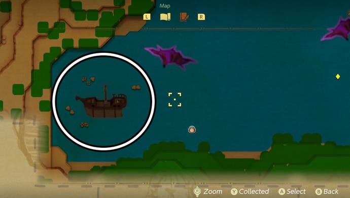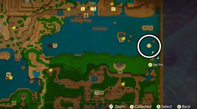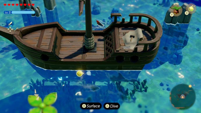 For this Heart Piece, you first need to start 'The Zappy Shipwreck' side quest in Seesyde Village. This will send you on a quest to a shipwreck in the waters south-west of the village, which contains a mini-dungeon.
