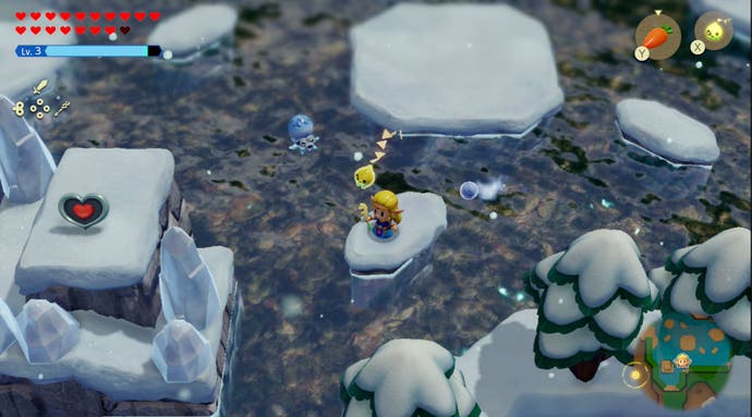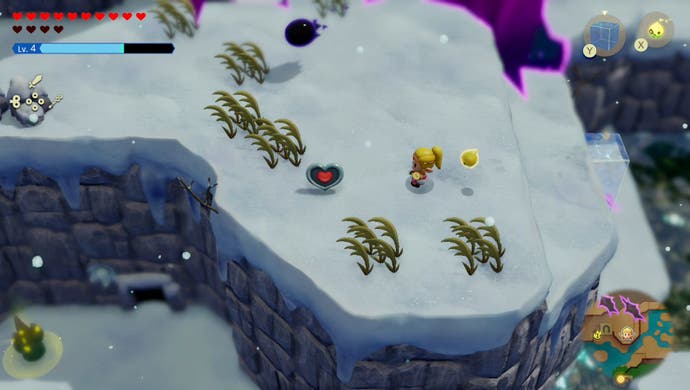 There's four Heart Pieces in the Hebra Mountain region of Zelda: Echoes of Wisdom: