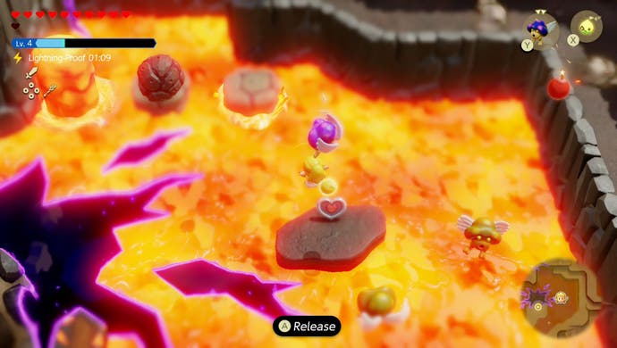 There's four Heart Piece locations in the Eldin Volcano region of Zelda: Echoes of Wisdom: