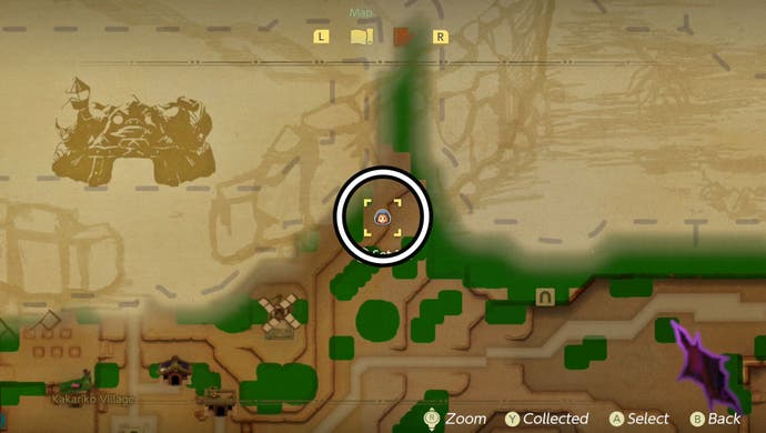 Kakariko Village holds another Heart Piece for you to collect. For this one, you need to head to the hills just north-east of the windmill to find the Acorn Gathering game. Spend 10 Rupees and collect all of the Acorns before 40 seconds pass to earn the Heart Piece.