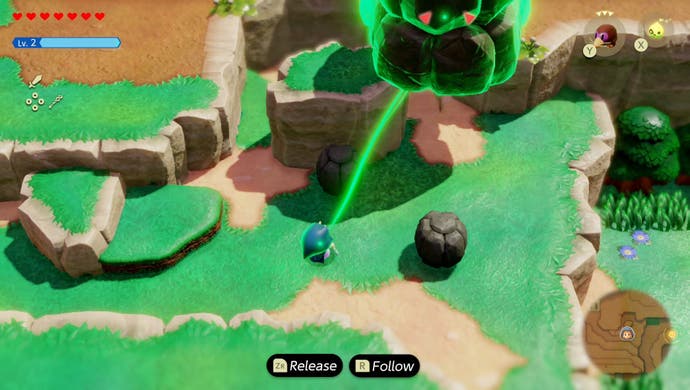 When you're there, use Bind to move the giant boulder and, once it's out of the way, grab the Heart Piece.