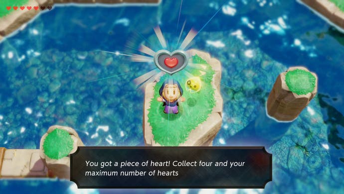 To reach it, you need to swim out to the rocky outcrop on the right-hand side of the beach. From there, use the Bed Echo to create a platform to where the Heart Piece sits.