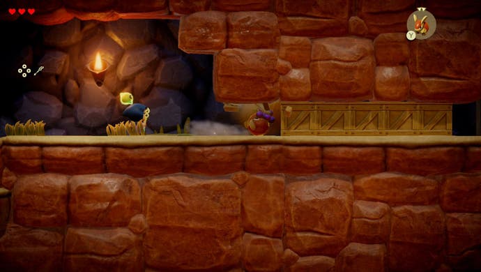 Once inside the cave, you need to move the first moving platform and then jump on the second one to reach the higher ledge.