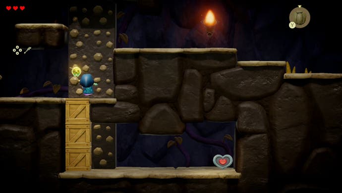 It's trapped behind a series of crates, so you'll need to climb onto the nearby ledge. Once there, create a Boulder Echo and drop it down on the crates. You'll need to do this three times to reach the Heart Piece.