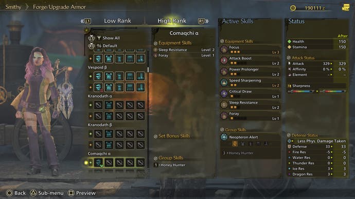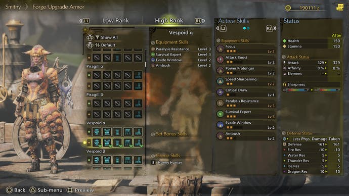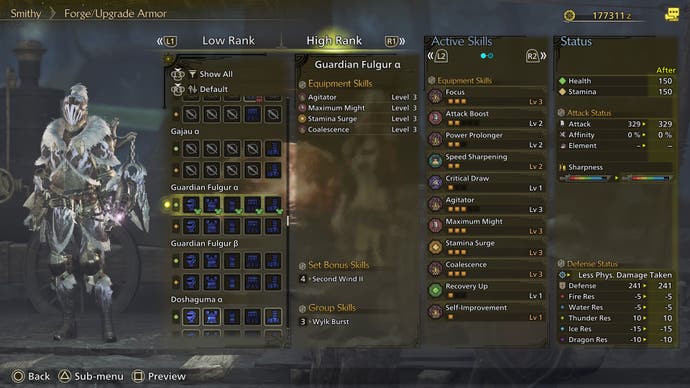 To help you out, we've listed all of the High Rank armor sets in Monster Hunter Wilds below, along with each armor piece's required resources, cost, stats and skills.