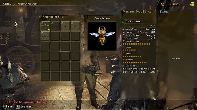 Due to its paralysing powder and high Stamina stats, the Cancadaman Kinsect pairs well with the Lala Stromatopelm. You can raise it by purchasing a Culldrone, then raising it into a Rigiprayne, and then the Cancadaman.