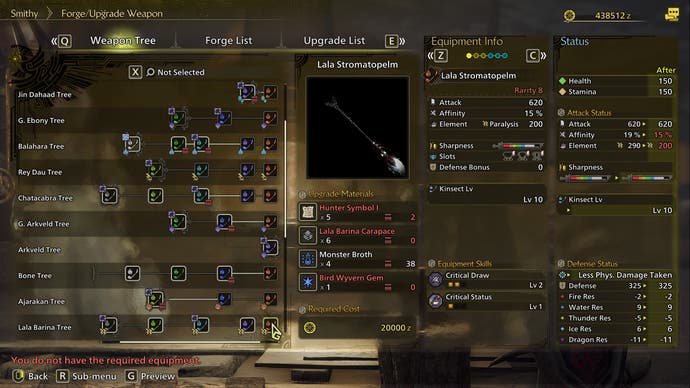 Our favourite Insect Glaive in Monster Hunter Wilds is the Lala Stromatopelm, which sits at the end of the Lala Barina tree. What it lacks in raw damage it makes up for with its elemental ability - you can regularly expect to paralyse a monster with continued attacks. The Stromatopelm also features a high Kinsect Level which allows you to ratchet up the debuffs with a Paralysing Kinsect, and the crit-focused Weapon Skills don’t hurt either.