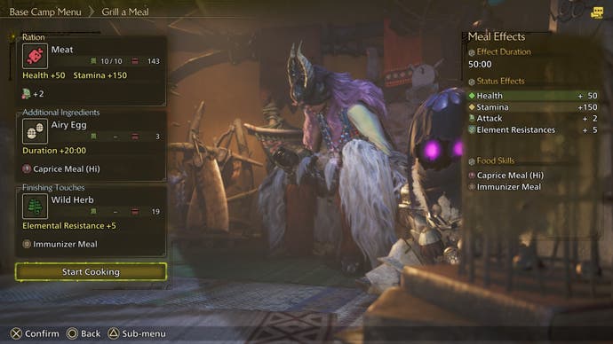 Making meals in Monster Hunter Wilds isn't just fun; it's critical to boosting your health, damage resistance, and other key stats. Chowing down a meal before embarking on a hunt allows you to finetune your stats to suit the monster you're about to face. Taking on some of Wilds' more challenging beasts is much more challenging if you don't know your way around the BBQ Grill.