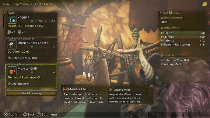 Best meal for hot and cold climates in Monster Hunter Wilds