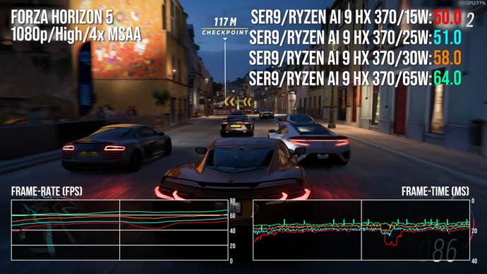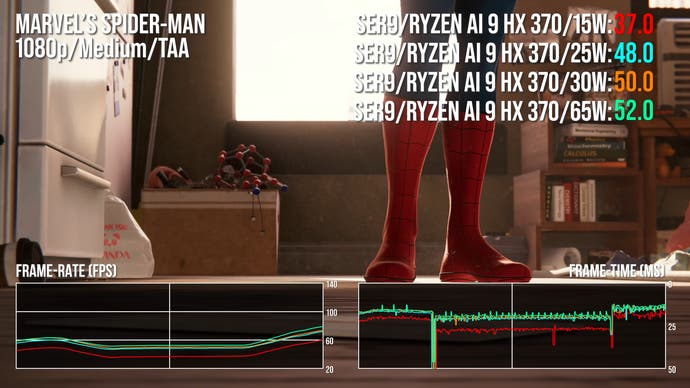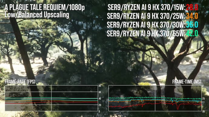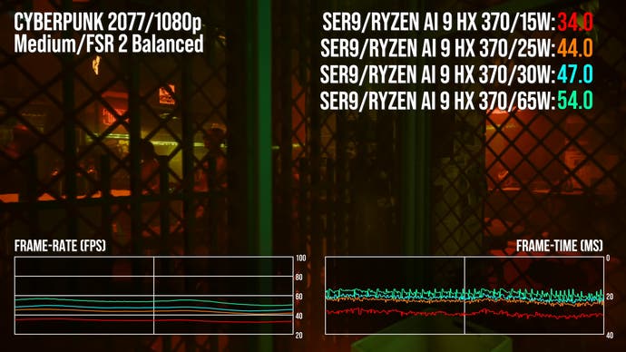 Of course, there's little point in running the HX 370 at 15W if you actually want to maximise frame-rates, so let's ramp up the power levels and see how much extra performance we can unlock. As well as 15W runs to compare against the Steam Deck, we have 25W and 30W results for parity against the ROG Ally in its unplugged/plugged power modes and then 65W for the full-fat SER9 experience.