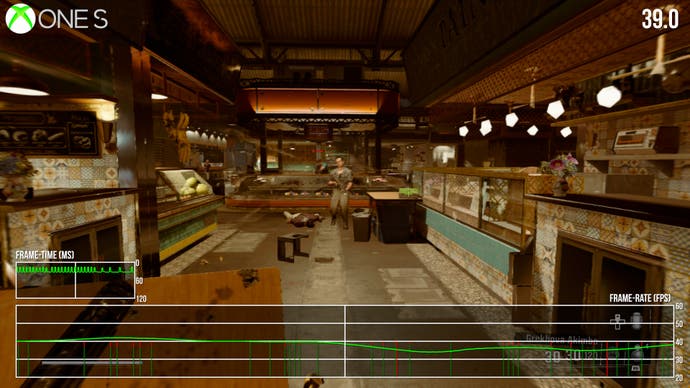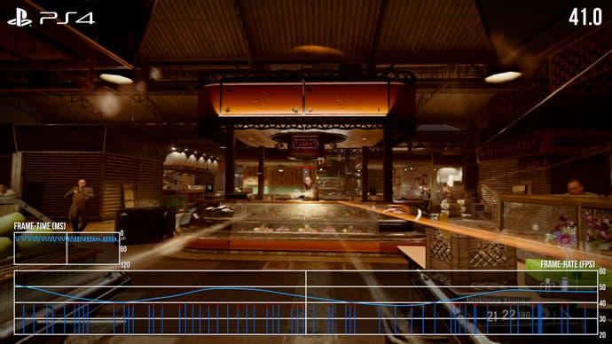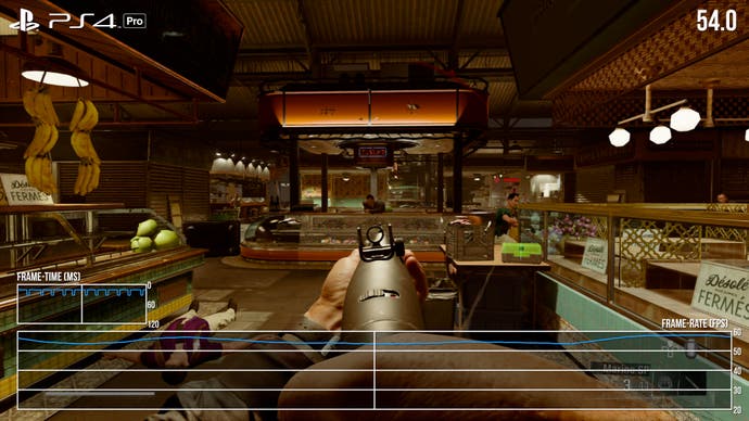 Looking at PS4 Pro next, the good news is that much of this is improved. In terms of resolution there is a target 1512p, with a drop on the horizontal axis as with other machines. Potentially checkerboard rendering is in assistance here as well. Alas, the checkpoint hitches remain on PS4 Pro - frustratingly - but the typical frame-rate in action holds to 60fps much better across the board. There are exceptions like the shootout through the market, taking us down into the 50s at points, and likewise while planting C4 during the open-field missions. Also, interestingly, PS4 Pro is the only console that engages v-sync, meaning no screen-tearing. Of the quartet of last-gen machines, PS4 Pro is the best of a bad bunch in this sense; it's by no means perfect, and fluctuates between 50-60fps with heavy combat, but it's capable of a tighter 60fps experience than most.