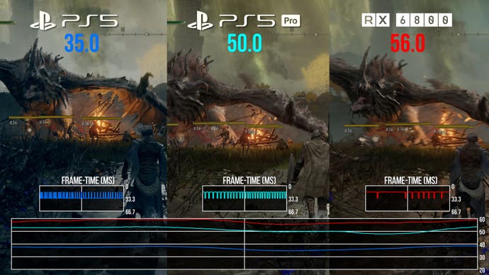 From here, the question is whether Game Boost accurately represents the entirety of PS5 Pro's extra horsepower - or whether there are limitations that mean you don't see all of the GPU's additional capabilities. With that in mind, many commentators have compared the Pro's rasterisation performance to the RX 6800. Based on our Elden Ring tests with quality settings comparable to PS5 (and ramped slightly higher if there is no exact match with consoles), the 6800 is faster. This is just one test though: it require a good deal more research to get a firm handle on how performant the Pro really is.
