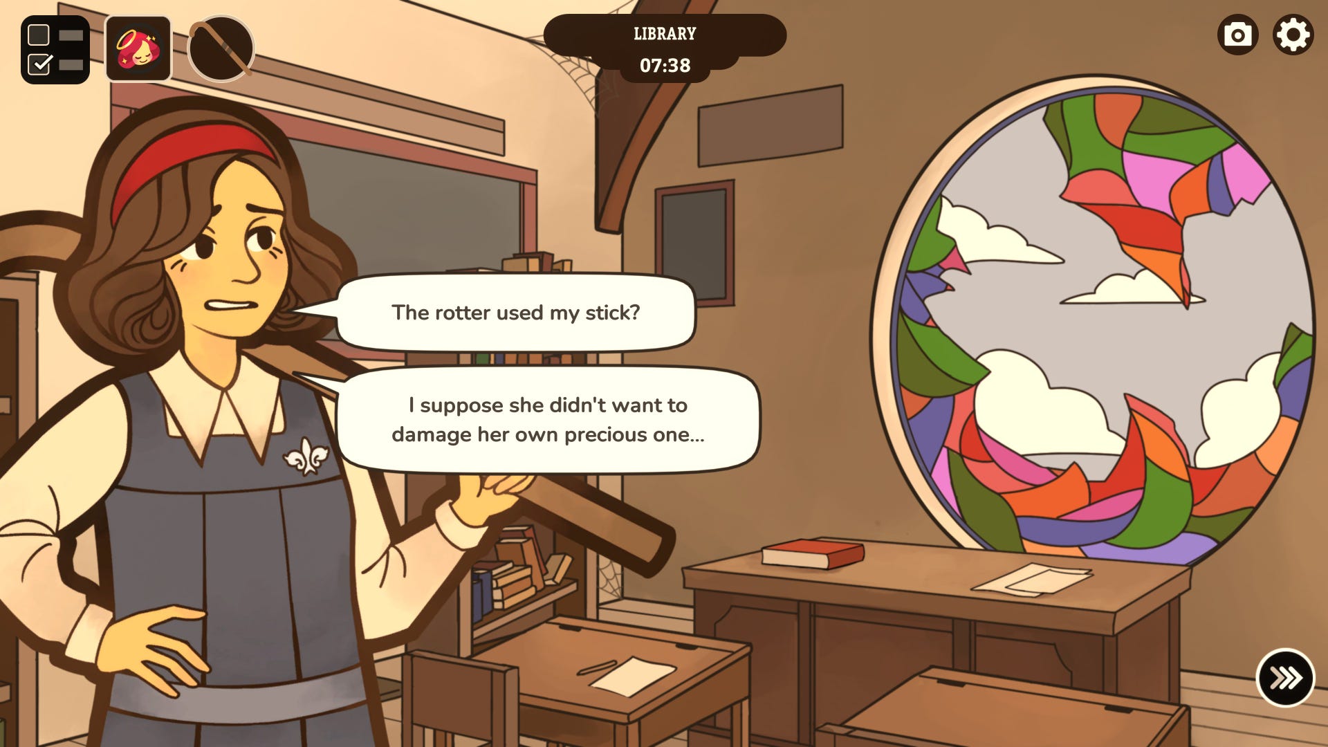 I won't beat around the bush - you will be humiliated and expelled several times over before you feel like you're gaining any headway with your investigation. It took me almost a dozen goes to get right to the end (around four hours in all), but that feeling of constantly banging your head against the wall of Miss Mulligatawny's unrelenting scepticism can be wearying. Indeed, there were times when I wondered where the fun had gone, as even the run where I'd successfully managed to evade being noticed, accused or implicated in any way throughout the day still ended with an instant expulsion come the end of the day. In these moments, the air of unfairness that runs through Expelled can be hard to overcome. But it does, at least, work quite hard to try and pull you through from one playthrough to the next - and this is the second big reason why Expelled works so much better for me than Overboard does.