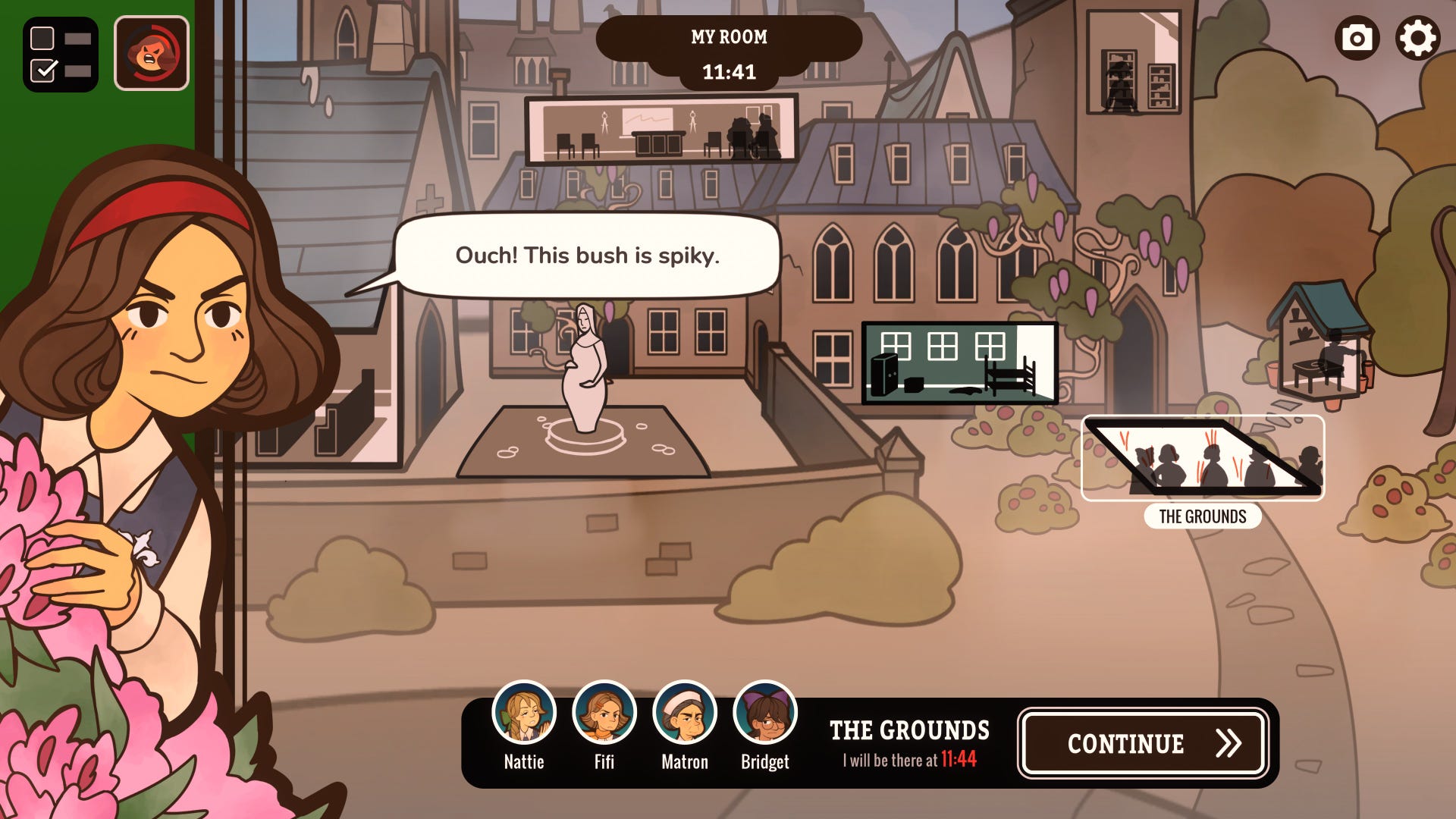 You'll do this in a similar fashion to Overboard: by going to different locations around the school at different times of day to either poke around quiet corners or interrogate anyone who happens to be present there when you arrive. Everyone operates on their own schedule in Expelled, and time will speed on as Verity travels around its corridors and goes about her business. Finding the right pieces of information at the right time, not to mention getting folks alone so they're more likely to open up about particular issues, all comes down to the decisions you make in the moment, and Inkle's malleable and reactive script does a splendid job of letting you take the reins in your own investigation. You can be a good student and attend all of Verity's classes if you wish (the Latin test with your pal Nattie is a particular highlight if you're after a good giggle), or you can spend the entire day nosing around behind the chapel's tapestries to discover even stranger tangents about the school's founding. Your time is yours to do with what you please - until the 4pm prize-giving, that is, where you'll need to make your case and not be humiliated in front of the entire school.