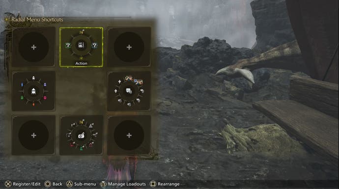 To do this, open the main menu and scroll to 'Items and Equipment'. Here you'll find the option 'Customize Radial Menu'. Selecting it will open your Radial Menu Shortcuts loadouts.