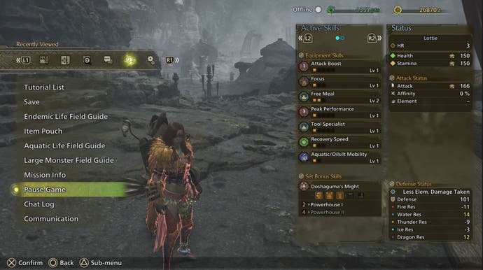 Now I can hear you say, 'Lottie, pausing games is easy. Why have you written a guide for this?' Well pausing Monster Hunter Wilds isn't as simple as it sounds. Sure you can open the menu whenever you like, but this doesn't automatically pause the game. This means a monster can easily eat you even when it's open!