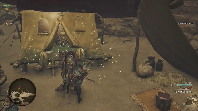 After talking to your final Guildmate, you'll need to head into the Expedition Command tent where you'll sit (or skip) through a cutscene. With that done, it's time to visit your tent. This is one of the most important places in camp, because your tent is where you'll manage your inventory.