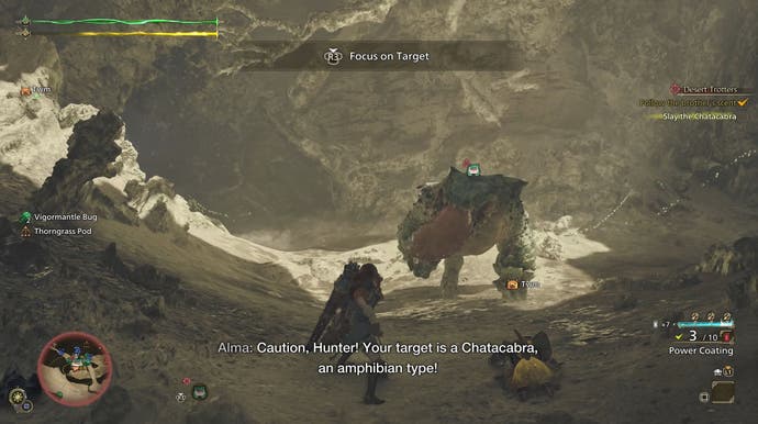 Desert Trotters is also where you'll hunt your first monster in Monster Hunter Wilds, the Chatacabra. (Wilds might have a lot of cutscenes, but it does get down to business.) Alongside this, you'll also have to complete the short Back to Camp mission before you can progress to the Village of Whispering Winds main mission.