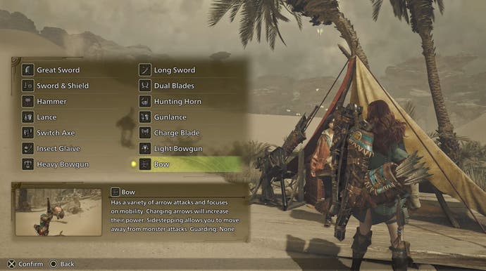 It's now time to pick your weapon in Monster Hunter Wilds! There are 14 weapons to choose from and, at the moment, you can only pick one. (Though you will be able to have a secondary weapon in the future.) For now, you can either choose your own weapon, ask Alma for a recommendation or take a look at our best weapon tier list for Monster Hunter Wilds. Personally, I went with the Bow - best to stay away from monster jaws in my opinion.