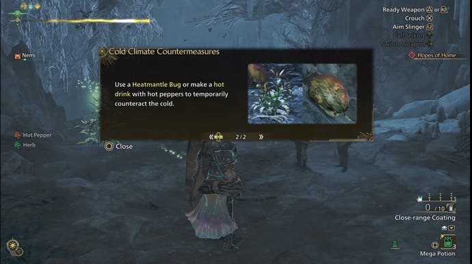 Hopes of Home in Monster Hunter Wilds sees you exploring a very chilly climate, so make sure you've got items to warm you up!