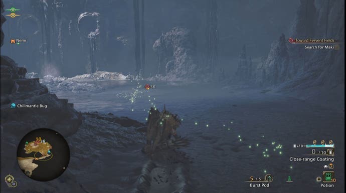 You're now on a mission to find Maki. Before you head out, however, it's worth ensuring you're stocked up on Antidotes or Herbal Medicine as they will be very useful against the upcoming monster. We also recommend using a water-based weapon if you can and bringing along Shock Traps. You may also want to bring items that cause the Sleep, Paralysis, Stun, Blastblight or Exhaust effects.
