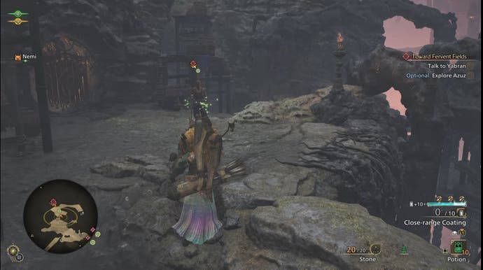 Towards Fervent Fields begins with you arriving in a new location in Monster Hunter Wilds - Azuz, the Everforge. (Looks like events are going to get fiery after the lush forest landscape.) You can take the time to explore Azuz now if you like, it is one of the optional objectives after all, or you can barrel through with the main campaign by talking to Yabran.