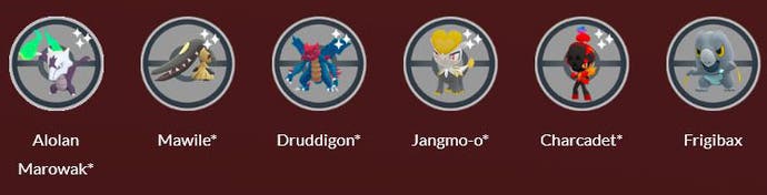 Research breakthrough-wise, from Tuesday 4th March to Tuesday 3rd June, you'll be able to earn an encounter with these Pokémon: Alolan Marowak, Mawile, Druddigon, Jangmo-o, Charcadet and Frigibax.