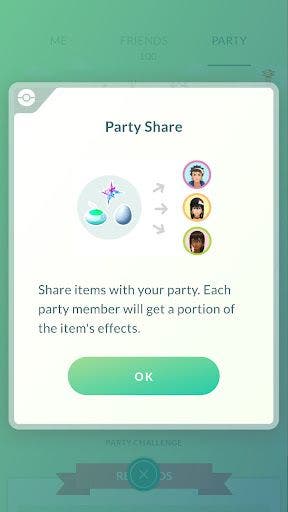 Finally, you can not combine a Party Share bonus with another Trainer Boost effect such as Daily Adventure Incense, the Coin Bag or Mystery Box.