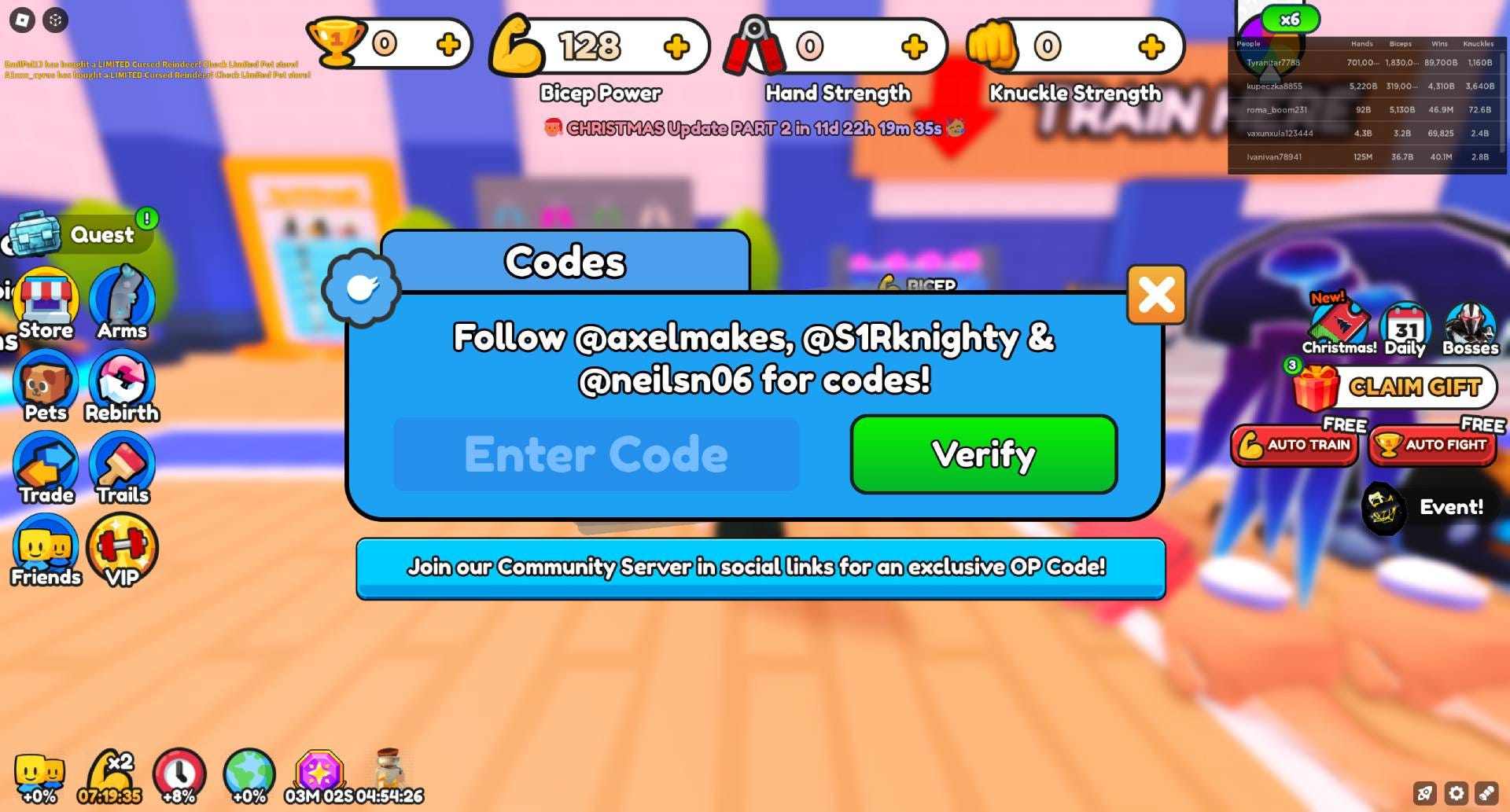 How to redeem Arm Wrestle Simulator codes in Roblox.