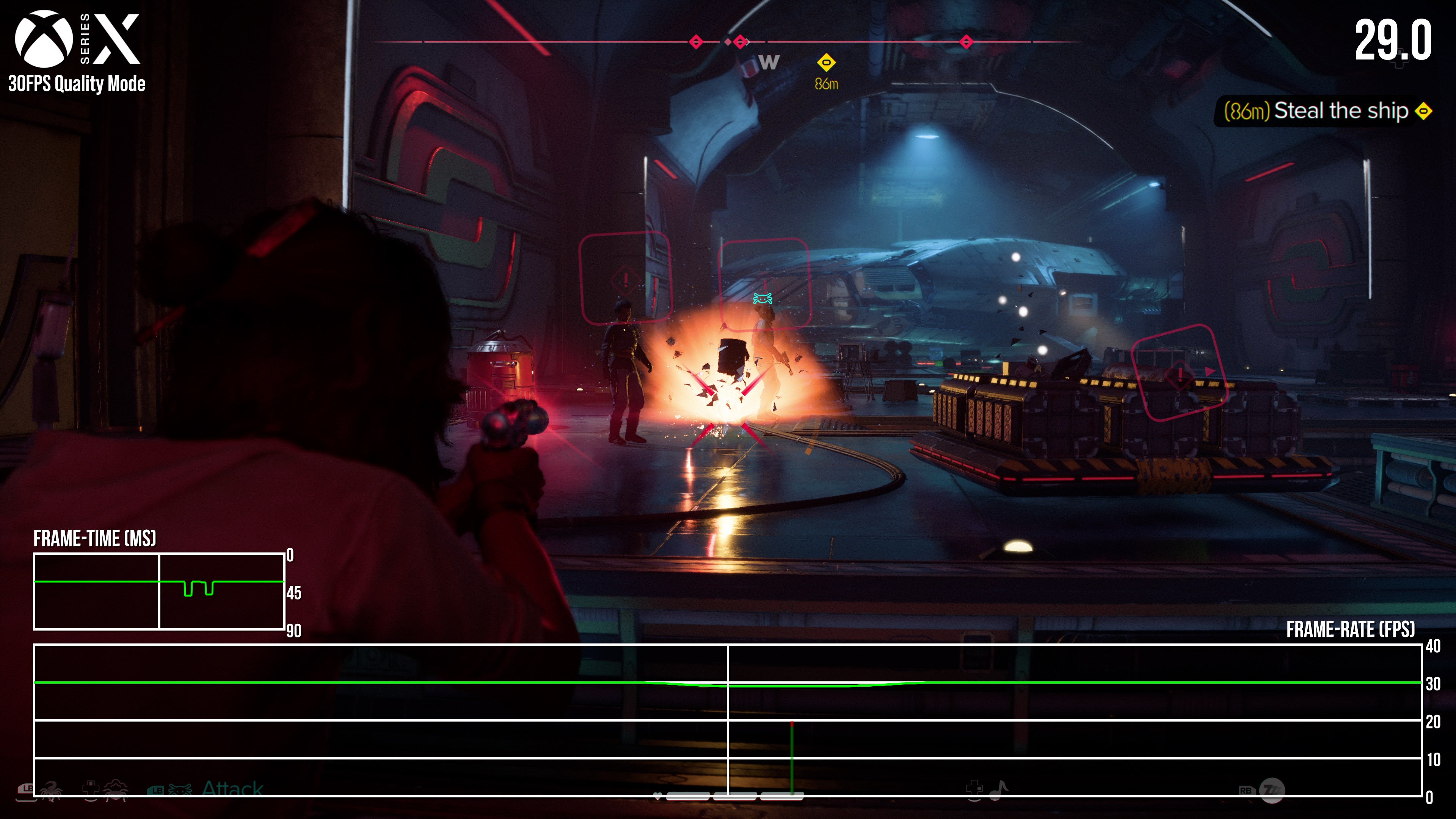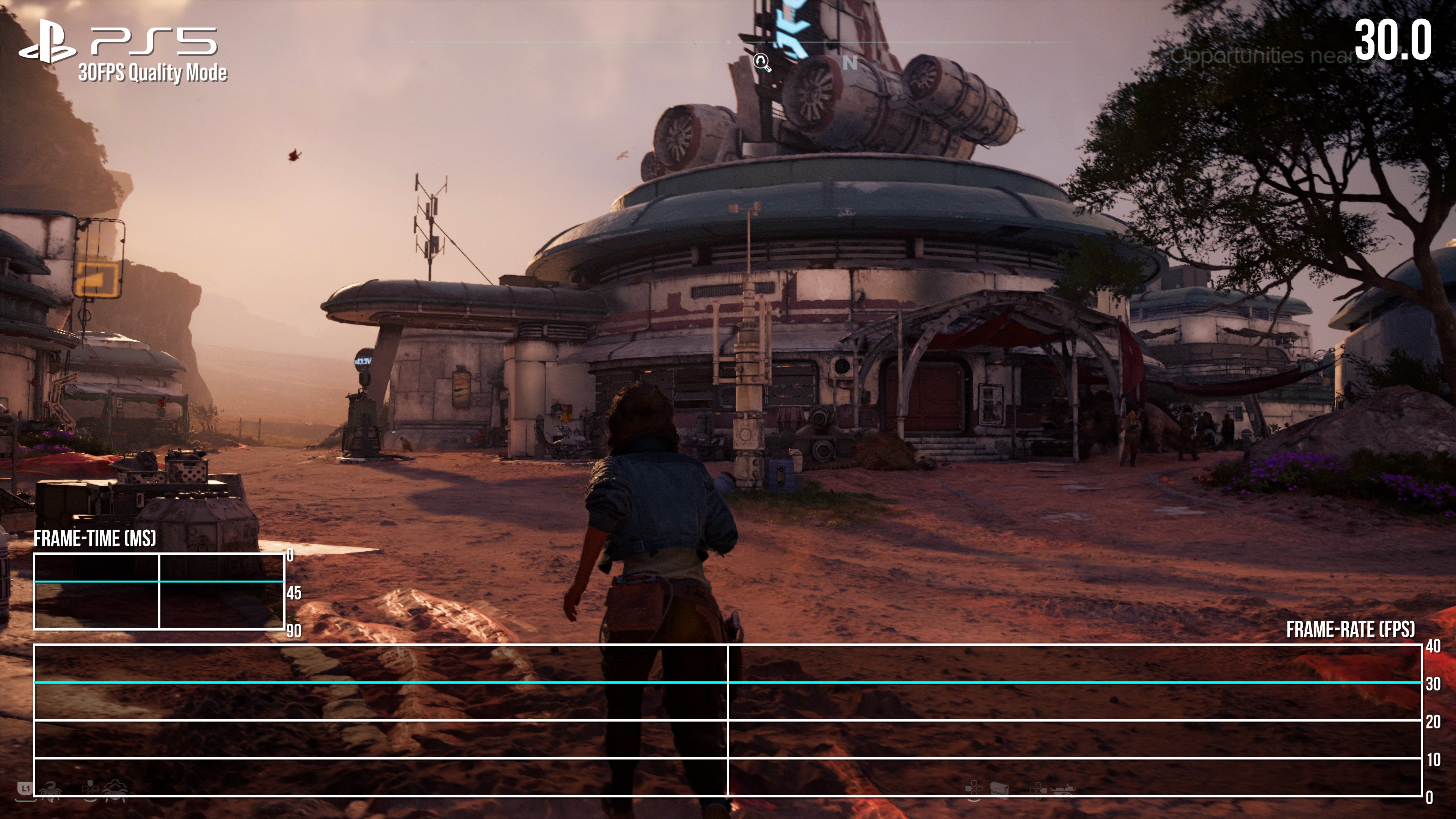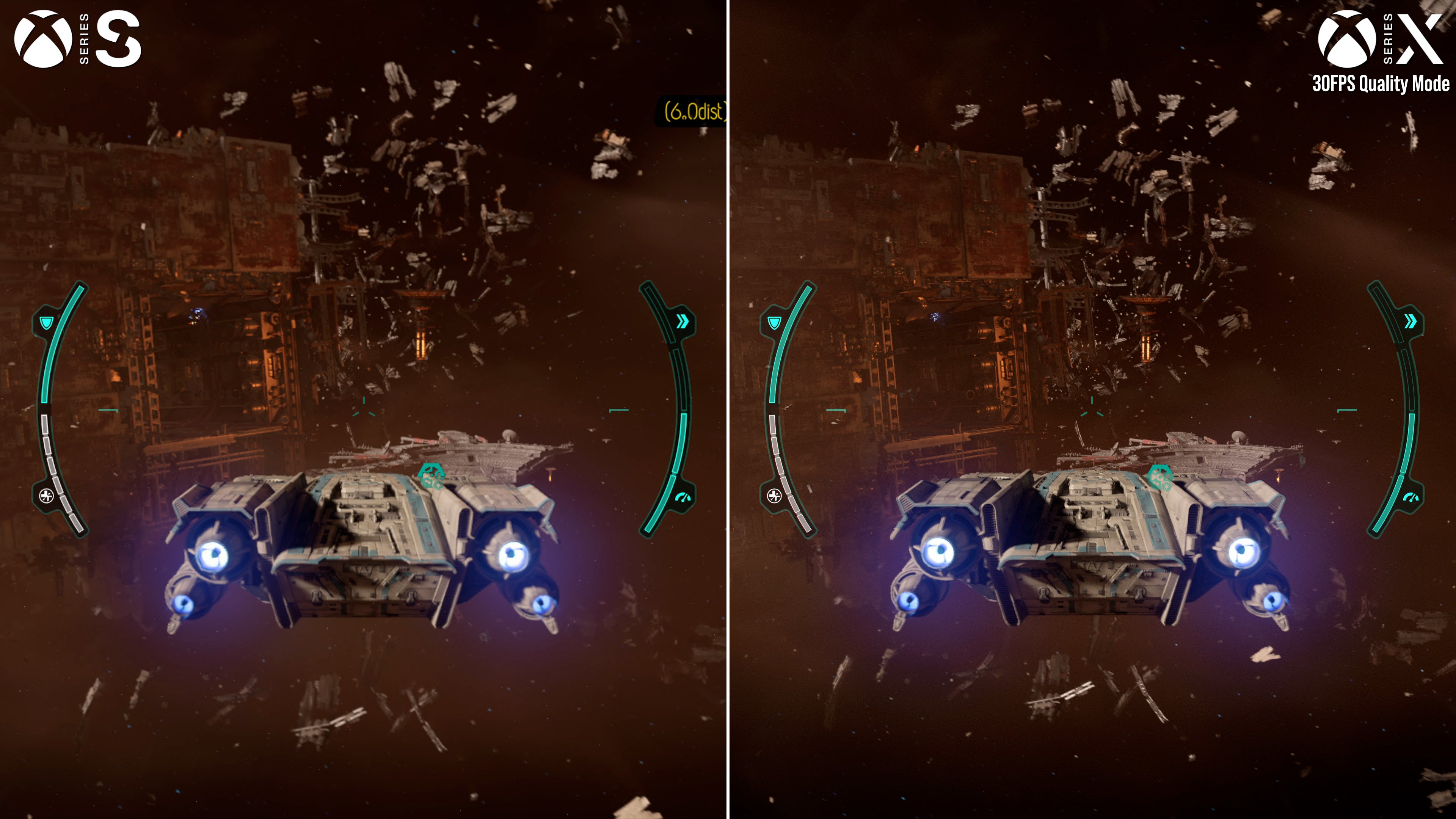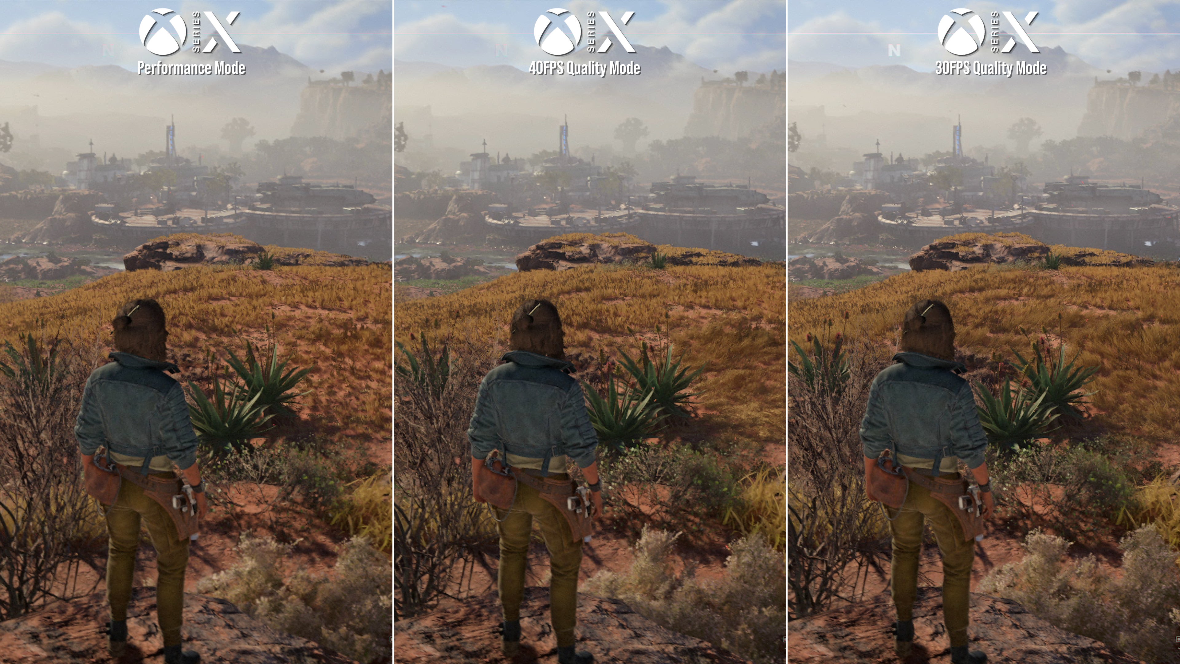 Rounding out PS5 and Series X testing is the 60fps performance mode, and despite the lower resolution and dropped settings, a locked 60fps isn't quite on the cards. Space battles and sneaking through small interiors is largely at 60fps, but navigating big cities or wider landscapes results in drops into the 50s on both machines.