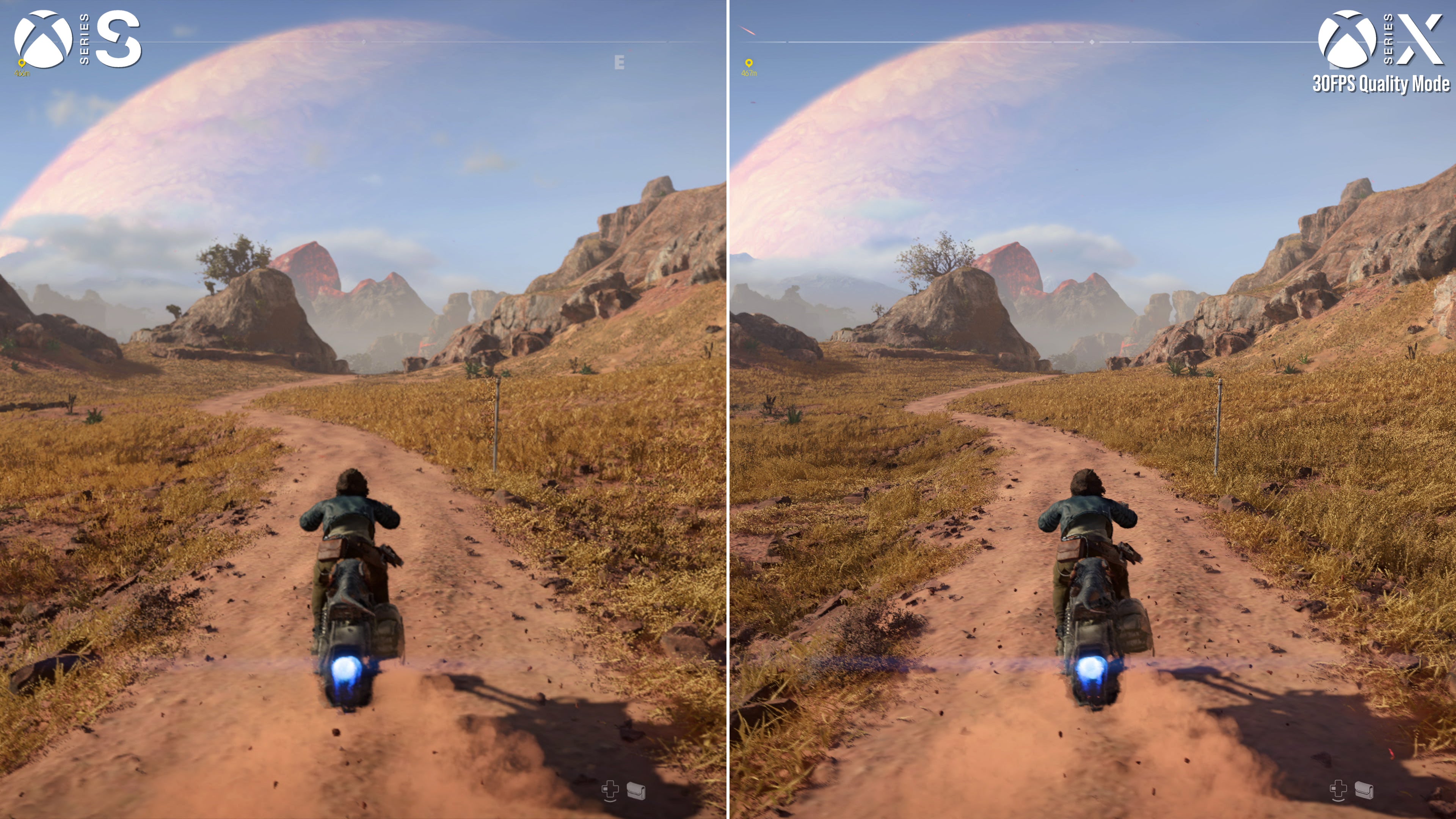 The main difference is that Series X once again deploys occasional screen tear right at the top of the screen, but on the plus side, the console is able to run its 60fps performance mode within a 120Hz container. By outputting at 120Hz, VRR has a much wider range to work with on Xbox, with 40Hz being the lower bound, versus the more limited 48-60Hz range on PS5. On balance, VRR is still very effective on both consoles for any sub-60fps drops while speeding across the world, but anything lower, and the judder is more keenly felt on PS5.