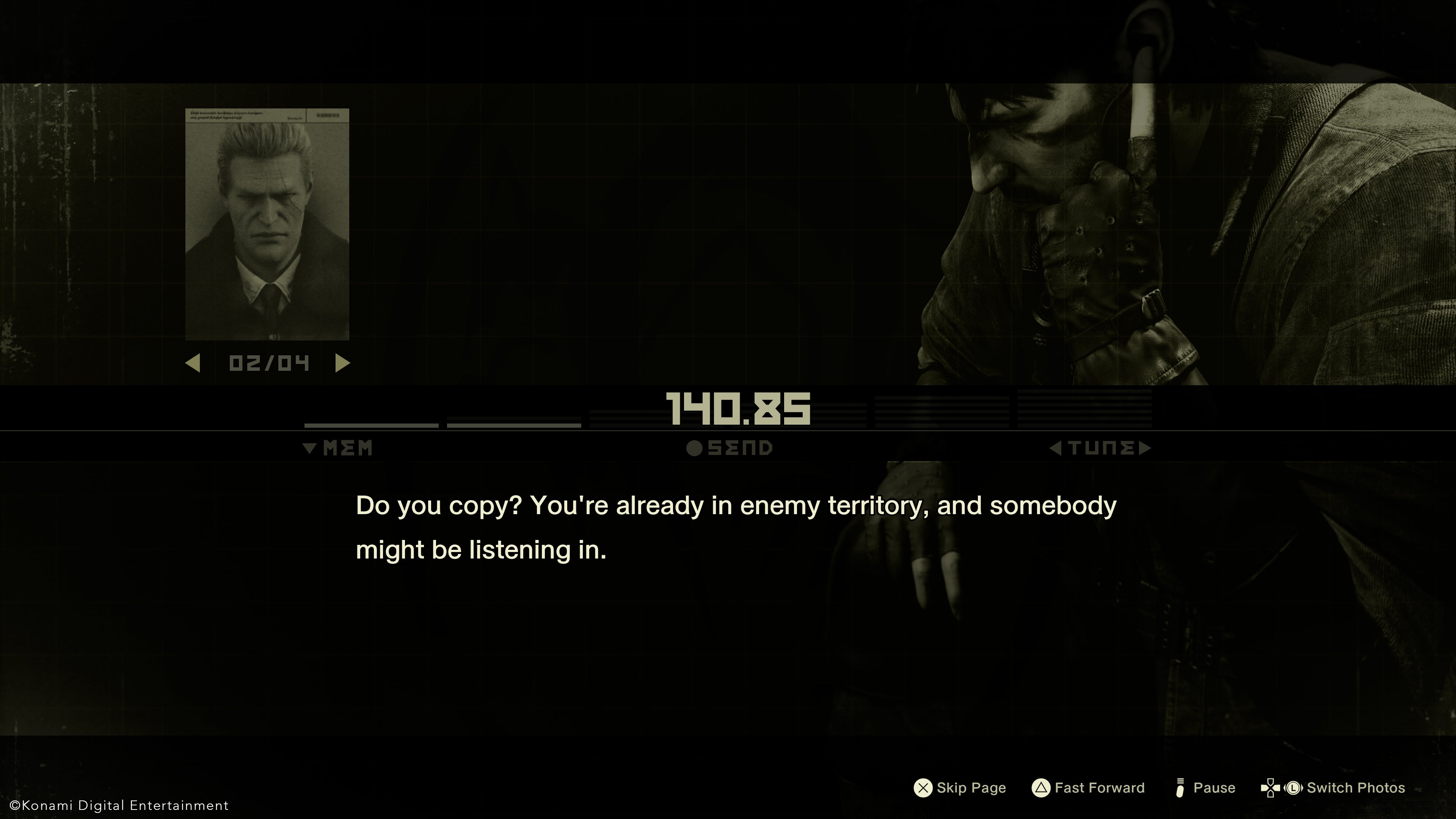 Also - yes - MGS3's use of occasional real-world footage returns. The remake deploys the same archived recordings as the original to set up its paranoia-fuelled, Cold War backdrop. A montage of Robert F. Kennedy speeches and military marches present in sepia, now at a higher resolution here. Also, in step with its video treatment, codec calls now play out with an audible boost to encoding quality during the PS5 build on show.